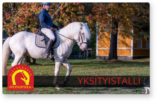 TUTUSTU VUOKRATTAVIIN TALLIPAIKKOIHINLisätietoja tallista antaa: toimisto.ponipiha@gmail.com Tallipaikkakyselyt: toivo@hietasaarenponipiha.fi Hevosten hoidosta vastaa Hietasaaren Toivo ry | HINNASTOVoimassa 1.4.2024 alkaen - Karsinapaikka alkaen 250€ |